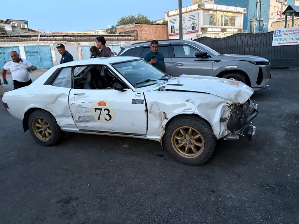 I had previously posted about issues they were having with their steering column. While in Almaty, they hired a local garage to address those issues, rebuild the front shock absorbers, replace tie rod ends and some other miscellaneous repairs. After picking up the car at midnight, we saw them off the next morning with high hopes. Several hours into their drive out of Almaty, a steering bracket sheared off and they were immobilized at the side of the road. The resourceful mechanics from the rally improvised a repair and discovered that the Almaty garage had inadvertently (hopefully) welded part of the steering assembly to the bracket.